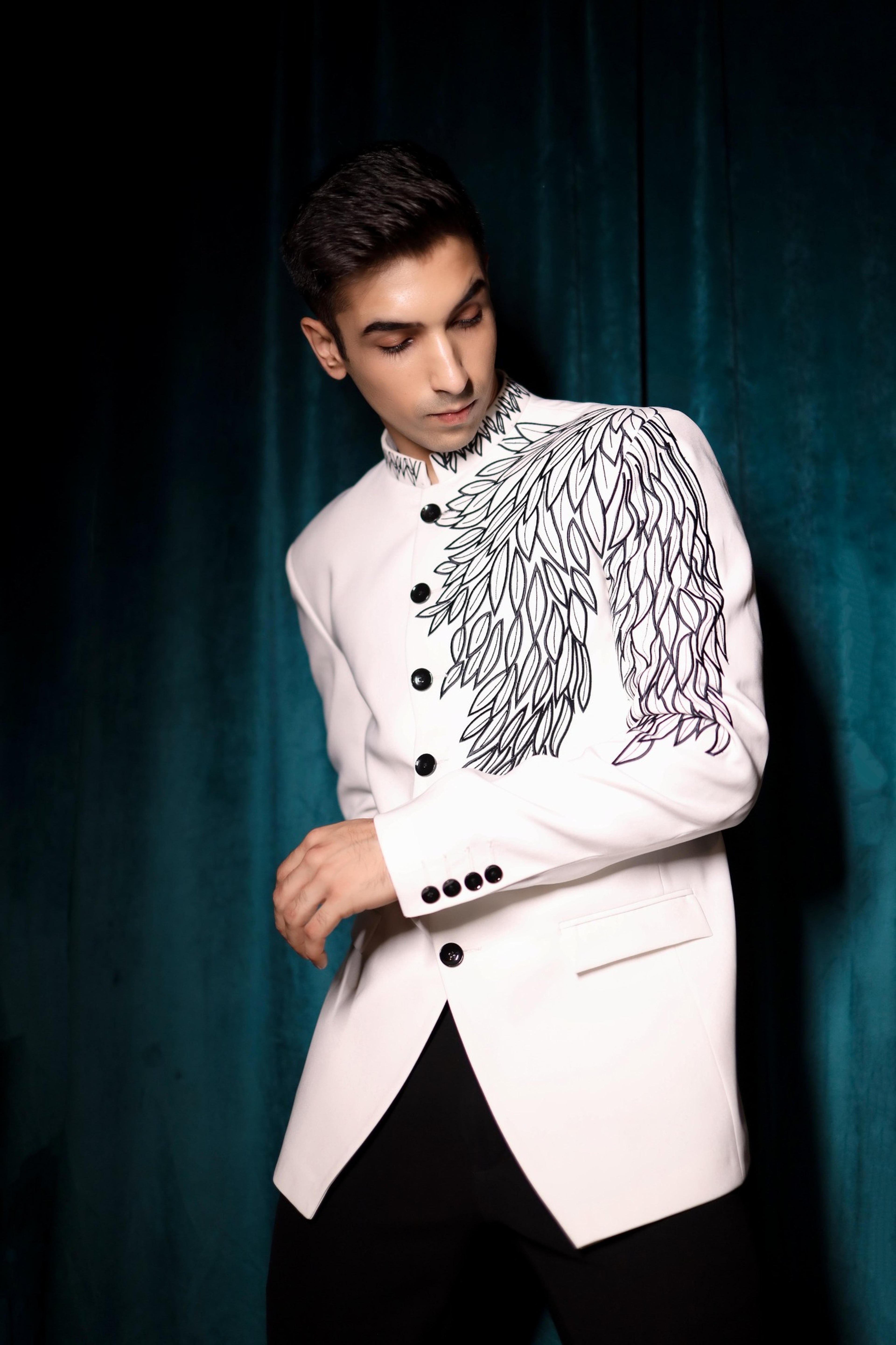 Teal Blue Embroidered Bandhgala