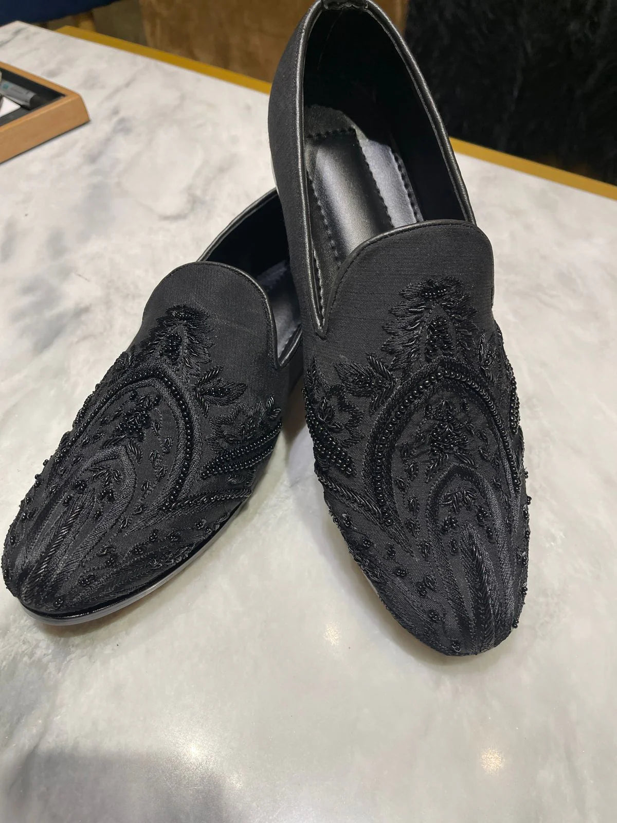 Step into sophistication with these Black Loafers, featuring fine hand embroidery for a touch of elegance. Designed for superior comfort and timeless style, these loafers are ideal for weddings, festive occasions, and formal events.