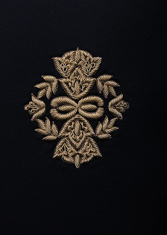 Exude sophistication in this Black Sherwani, highlighted with elegant embroidery on the collar and sleeves. Perfect for weddings, receptions, and festive occasions, this sherwani blends classic charm with modern design.