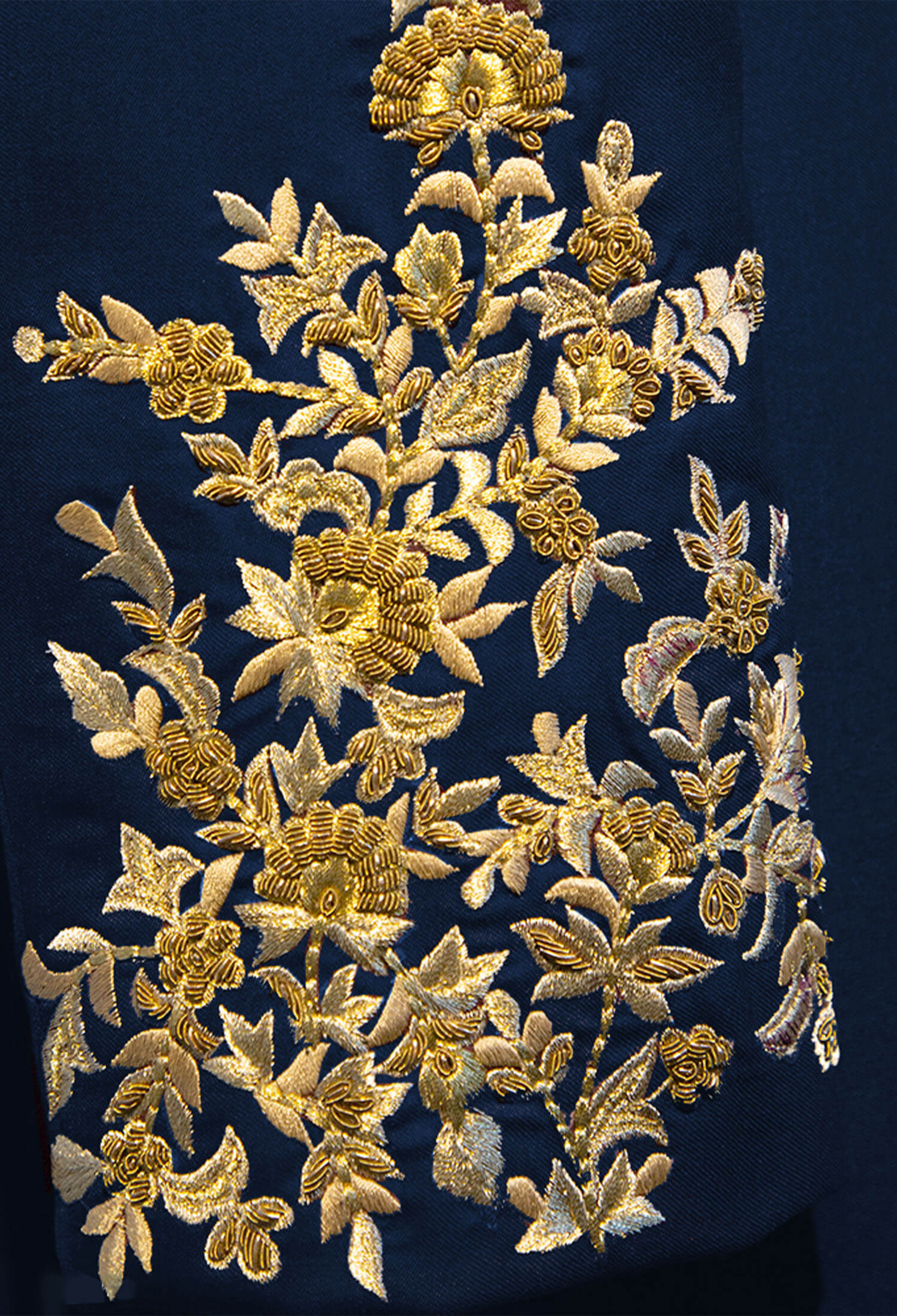 Add a touch of grace to your festive attire with this Blue Bandhgala, adorned with intricate floral embroidery. Tailored for a perfect fit and crafted for comfort, this jacket is ideal for weddings, receptions, and special cultural occasions.